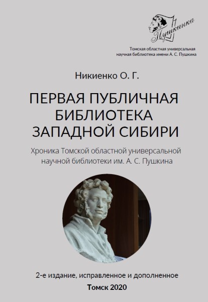 | Никиенко, О. Г. Первая публичная библиотека Западной Сибири: хроника Томской областной универсальной научной библиотеки им. А. С. Пушкина. - Томск, 2020 |