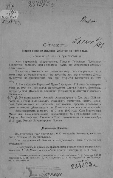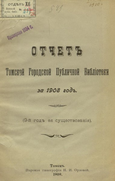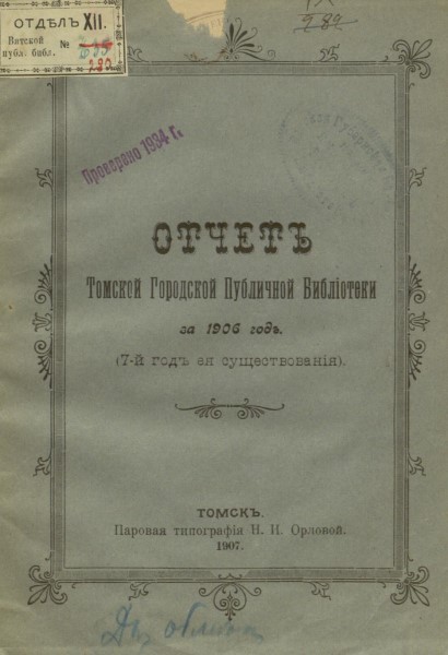 Другая важная тема в моей истории – это история нашей библиотеки. Когда я пришла на работу, мне говорили, что наша библиотека ведет свою историю с 1899 года. Но когда у меня под рукой оказались старые дореволюционные краеведческие справочники, там было написано, что публичная библиотека в Томске была открыта в 1830 году. Губернатор Ковалевский сделал предписание основать публичную библиотеку, надо было просто найти архивные документы, подтверждающие это. И эти документы действительно нашлись.